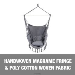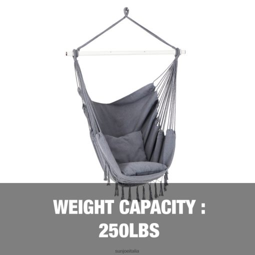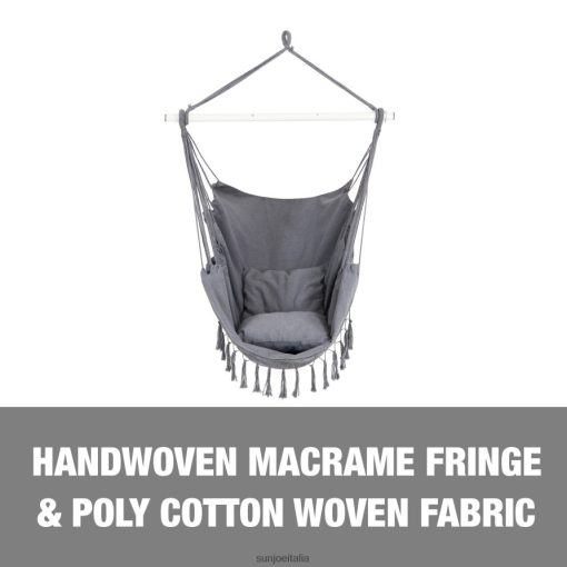 strumenti | Sun Joe amache bliss bhc-103-gy sedia amaca con frange con cuscini, tasca laterale, barra di sollevamento e accessori per appendere | 40 pollici largo | Capacità di 250 libbre (grigio) 2PJ