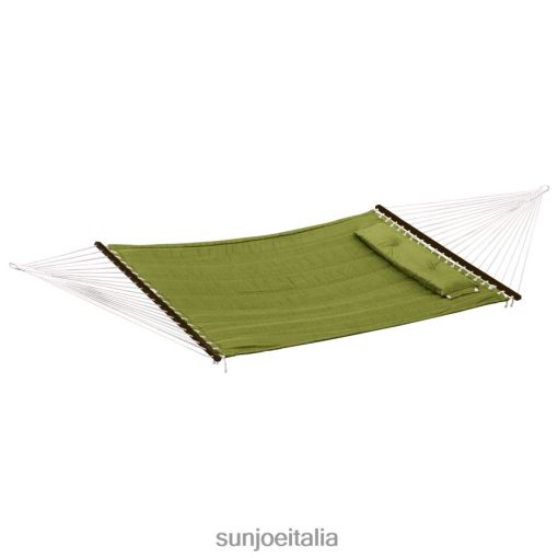 Per realizzare le amache trapuntate Bliss, utilizziamo un esclusivo processo di doppia cucitura a S che aiuta l’amaca a conformarsi al tuo corpo per un maggiore comfort. le barre di sollevamento in legno duro sono verniciate in color mogano scuro per un tocco elegante. Corda in poliestere da 6 mm dalla barra di sollevamento alle estremità per una maggiore durata e resistenza agli agenti atmosferici. appoggia la testa sul cuscino in ciuffo con bottoni abbinato incluso e rilassati per tutta la giornata.
