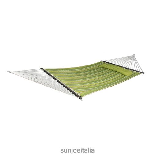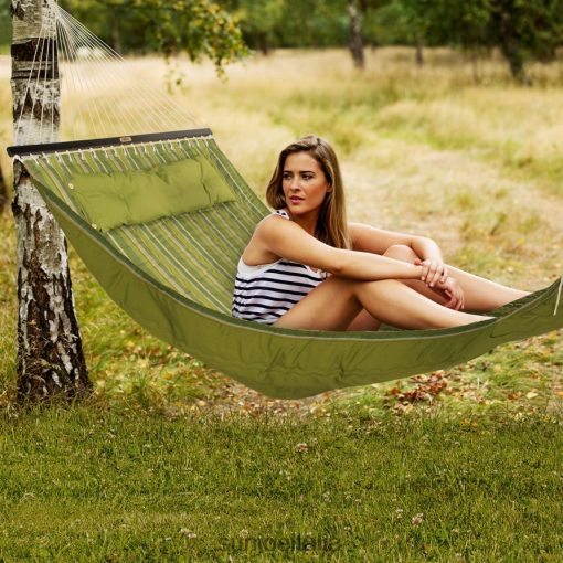 - costruzione superiore: realizzata con un tessuto olefinico facile da pulire, idrorepellente, protetto dai raggi UV e resistente ai colori. il letto trapuntato dell’amaca ha un esclusivo punto a doppia S che aiuta l’amaca ad adattarsi al tuo corpo permaggiore comfort mantenendo il riempimento in posizione. la resistente corda in poliestere da 6 mm si estende dalle barre di sollevamento alle estremità e resiste alle intemperie