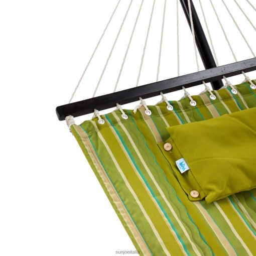 - reversibile: a strisce su un lato e solida sull’altro. Il cuscino con ciuffo a bottone da 36” x 10” può essere collegato a entrambi i lati dell’amaca