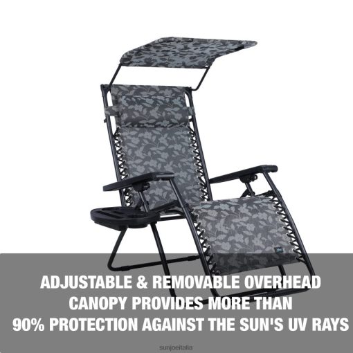 - tettuccio di protezione UV: tettuccio regolabile fornisce più di Protezione al 90% contro i raggi UV del sole. quando non è in uso, piegalo sul retro della sedia a gravità zero e bloccalo in posizione con le chiusure a scatto collegate al retro del telaio.
