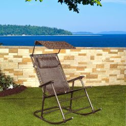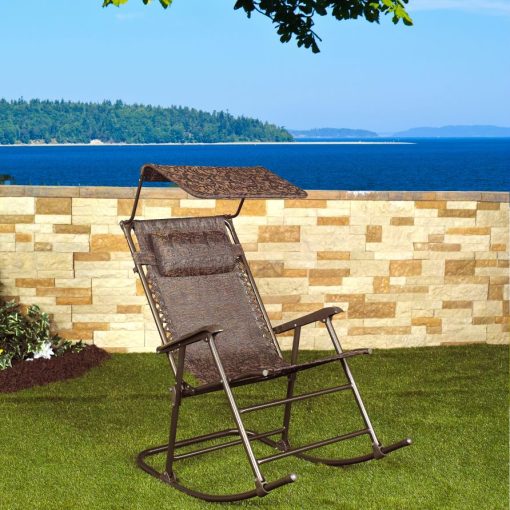 strumenti | Sun Joe amache bliss gfr-091j sedia a dondolo deluxe con baldacchino e cuscino | 27 pollici largo | resistente alle intemperie e alla ruggine | Capacità di 300 libbre (jacquard marrone) 2P