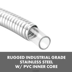 il tubo in acciaio inossidabile resistente come i chiodi! Il tubo leggero in acciaio inossidabile di Aqua Joe è semplicemente l’ultimo tubo di cui avrai mai bisogno! realizzato in acciaio inossidabile 304 di grado industriale di alta qualità per un utilizzo affidabile per tutta la vita nel tuo cortile e giardino. non si taglia, non si schiaccia o si spezza, non si spezza, non si piega e non si surriscalda al sole. è l’unico tubo che lavora duro quanto te. una guaina esterna in acciaio inossidabile robusta, praticamente indistruttibile e a prova di foratura circonda un nucleo interno in PVC flessibile, per massime prestazioni e durata, ed è dotata di collari limitatori di piegatura e raccordi in alluminio resistente su ciascuna estremità per un flusso d’acqua illimitato e connessioni sicure e a prova di perdite. senza piombo, senza ftalati e senza bpa. perfetto per innaffiare i fiori, lavare il camion, sciacquare i mobili da giardino o collegarsi a un irrigatore o ad un’idropulitrice.