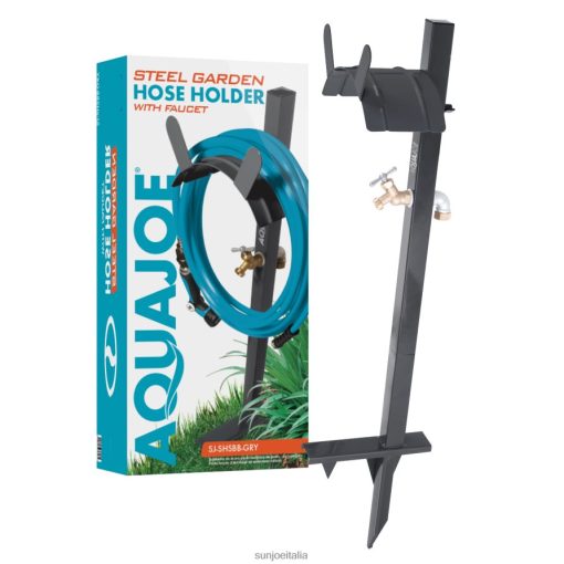 dì addio ai tubi pesanti e aggrovigliati e riponi il tubo in modo più ordinato con il rubinetto porta tubo da giardino in acciaio di aqua joe.