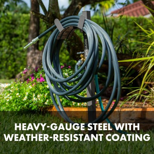 il palo verniciato a polvere alto 42,5 pollici e il gancio curvo sono resistenti alle intemperie resistente per una lucentezza duratura e costituisce un’aggiunta elegante a qualsiasi giardino. La struttura in acciaio di grosso spessore e un sicuro sistema di ancoraggio al terreno a 2 punti ti consentono di riporre fino a 125 piedi del tuo tubo da giardino standard in modo elegante, offrendo allo stesso tempo un facile accesso al tuo rubinetto. non rimanere intrappolato contro la tua casa: collega semplicemente la fonte d’acqua da un lato, il tubo dall’altro e sposta il supporto in una posizione più comoda, lontano da arbusti, piantagioni delicate o alloggi angusti. un rubinetto in ottone massiccio fornisce una connessione sicura e a prova di perdite per anni di prestazioni affidabili nel tuo cortile e giardino.
