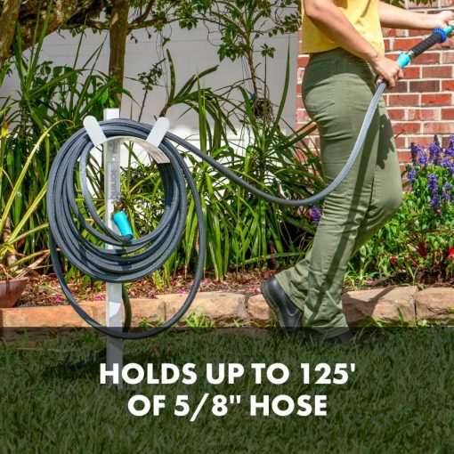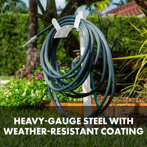 il palo verniciato a polvere alto 42,5 pollici e il gancio curvo sono resistenti alle intemperie resistente per una lucentezza duratura e costituisce un’aggiunta elegante a qualsiasi giardino. La struttura in acciaio di grosso spessore e un sicuro sistema di ancoraggio al terreno a 2 punti ti consentono di riporre fino a 125 piedi del tuo tubo da giardino standard in modo elegante, offrendo allo stesso tempo un facile accesso al tuo rubinetto. non rimanere intrappolato contro la tua casa: collega semplicemente la fonte d’acqua da un lato, il tubo dall’altro e sposta il supporto in una posizione più comoda, lontano da arbusti, piantagioni delicate o alloggi angusti. un rubinetto in ottone massiccio fornisce una connessione sicura e a prova di perdite per anni di prestazioni affidabili nel tuo cortile e giardino.