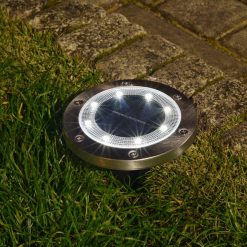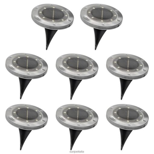 - caratteristiche più desiderabili: batteria ricaricabile da 600 mAh ad energia solare; accensione automatica di notte/spegnimento; 8 lampadine led per disco emettono un totale di 80 lumen; 8 dischi per confezione