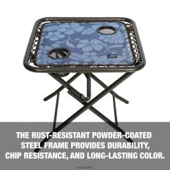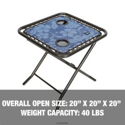 le amache Bliss il tavolino pieghevole da esterno si abbina perfettamente al nostro serie di poltrone reclinabili e sedie a dondolo senza gravità. ha due portabicchieri integrati (ciascuno con un diametro di 3”) e molto spazio aggiuntivo per contenere cibo o riviste. non è necessario alcun assemblaggio: basta semplicemente aprirlo e utilizzarlo. il piano del tavolo è realizzato in materiale a imbracatura con corde elastiche ben tese attorno a un telaio in acciaio per fornire una superficie robusta e durevole per le tue cose. a soli 6,6 libbre, può essere spostato rapidamente e con facilità nel cortile. per riporlo facilmente, questo tavolo a tracolla si ripiega fino a 26” x 20” x 3”. dimensioni complessive aperte del prodotto: 20” x 20” x 20”. capacità di peso: 40 libbre.