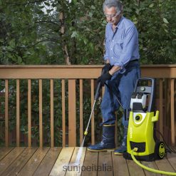 la nostra idropulitrice più venduta affronta una varietà di attività di pulizia: case, edifici, camper, automobili, camion, barche, ponti , vialetti, cortili, attrezzature per il prato e molto altro ancora! il suo potente motore da 1800 watt/14,5 A genera fino a 1450 psi di pressione dell’acqua e 1,24 gpm di flusso d’acqua. rimuove catrame e grasso dal cemento, macchie pesanti di muffa, macchie di olio e ruggine dall’acciaio, fango incrostato sulle attrezzature e altro ancora!