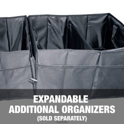 stow + go (con Joe) ! rimani organizzato con l’organizer pieghevole e regolabile di Auto Joe . il multiuso, rOrganizer resistente agli urti con scomparti personalizzabili, tasche a rete, tasche + maniglie per il trasporto, è ideale per il bagagliaio o il sedile del passeggero di qualsiasi auto, camion o furgone. auto joe offre una personalizzazione completa per soddisfare le tue esigenze di archiviazione. apri semplicemente la robusta piastra di base per espanderla a grandezza naturale per le gite al supermercato o per trasportare asciugamani, giocattoli in spiaggia – o dimezza la dimensione per mantenere organizzati gli strumenti del bagagliaio e l’attrezzatura sportiva. quando hai bisogno di un po’ più di organizzazione nella tua vita, puoi facilmente espandere le tue opzioni di archiviazione collegando ulteriori organizzatori (venduti separatamente) utilizzando le chiusure a levetta incluse per bloccarli insieme e in posizione. e con una capacità di carico massima di 85 libbre, Auto Joe è progettato per operazioni di carico e scarico facili e veloci per tenerti in movimento.