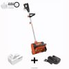 alimentato dall’esclusivo litio ionmax da 24 volt* di Snow Joe -sistema di batterie agli ioni e motore da 324 watt, la scelta della luce è la scelta giusta con Snow Joe! inoltre, il design a doppia impugnatura elimina la necessità di piegarsi e sforzarsi, massimizzando il comfort dell’utente e la facilità d’uso.