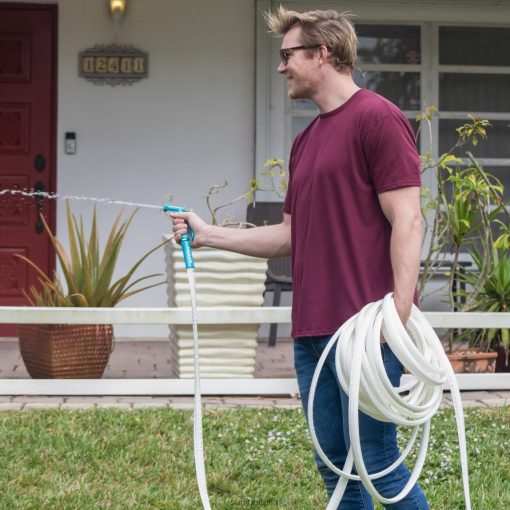 irriga a modo tuo! non dovrai più lottare per riporre un tubo aggrovigliato, attorcigliato, viscido e sporco sul tuo camper o barca. il tubo multiuso in fibra di aqua joe è l’accessorio di irrigazione perfetto da portare in viaggio. costruito con una robusta giacca in fibra marina che circonda un nucleo interno flessibile da 5/8 pollici, il tessuto resistente agli strappi e all’abrasione è sicuro su superfici delicate e verniciate: senza graffi, graffi o impigliature! l’innovativo design a doppio strato è a prova di schiacciamento, resistente allo scoppio fino a 600 psi e costruito per resistere ai trattamenti più duri, il tutto mantenendo la flessibilità fino a 0o f. dotato di raccordi in alluminio resistenti per una connessione solida e a prova di perdite, Aqua Joe è privo di attorcigliamenti, torsioni e grovigli per un flusso ininterrotto durante il riempimento del serbatoio dell’acqua o l’irrigazione del cortile e del giardino. le impugnature morbide e flessibili antiscivolo offrono il massimo comfort per l’utente e il tubo in fibra è fino al 50% più leggero rispetto ai suoi omologhi convenzionali. aqua joe è resistente alle intemperie e alla muffa,si asciuga rapidamente e si arrotola facilmente per riporlo in modo compatto dopo l’uso. inoltre, il rivestimento esterno in fibra e il nucleo interno flessibile sono privi di bpa, piombo e ftalati e sono adatti all’acqua potabile! quindi, porta l’acqua dove vuoi – intorno al camper, in barca, in macchina o in giardino – e vai con Joe. il tubo multiuso in fibra di aqua joe. equipaggiati.